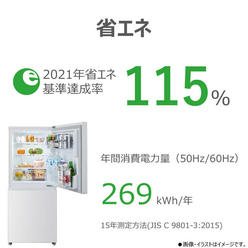 タイプ:冷凍冷蔵庫 定格内容積:160L ドア数:2ドア ドアの開き方:右開き 幅:503mm