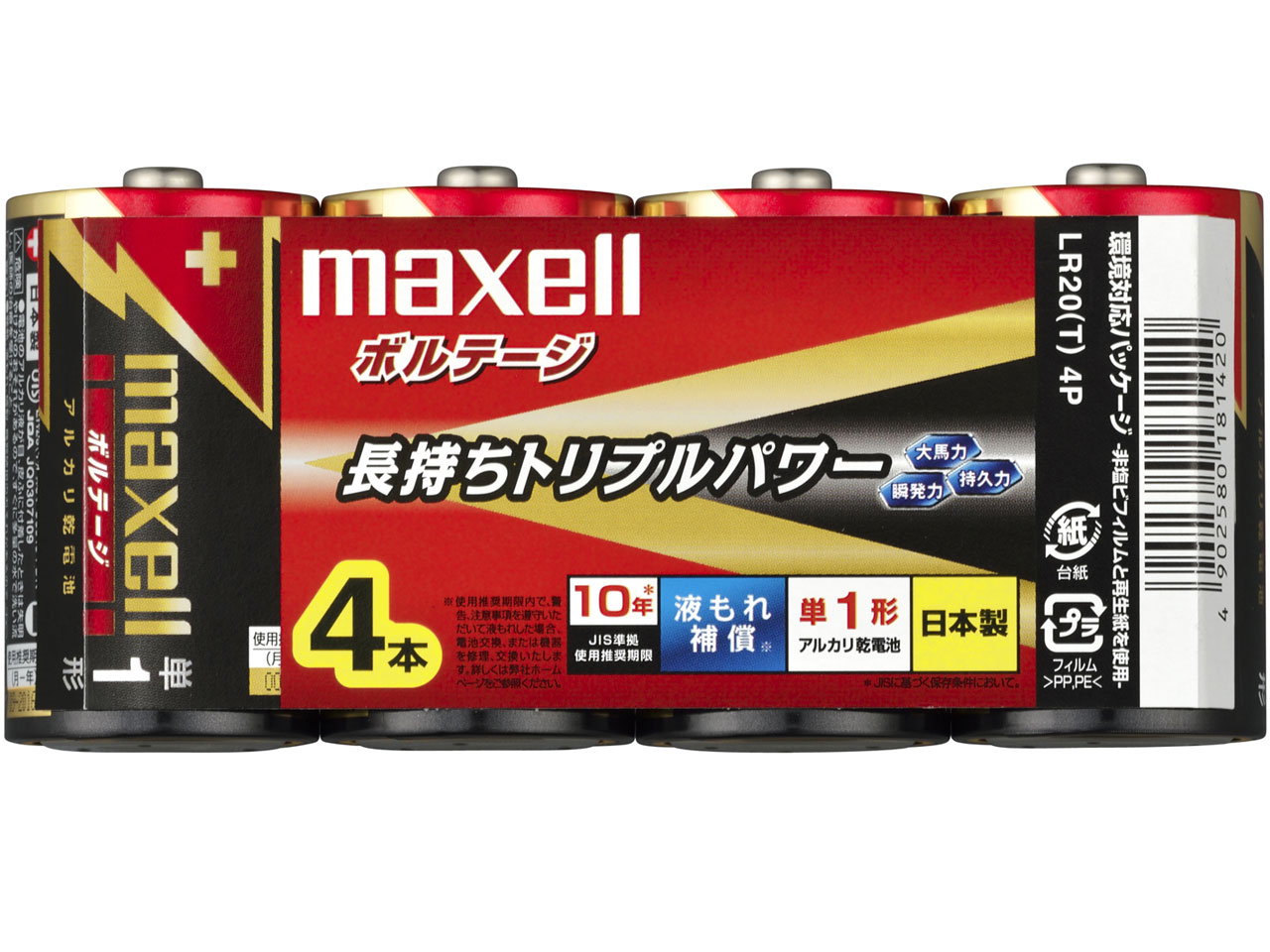 【新品】ボルテージ アルカリ乾電池 単1形 4本パック LR20(T) 4P