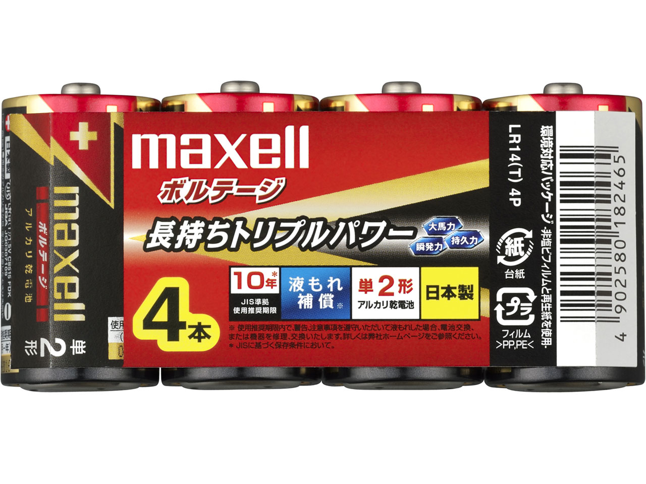 【新品】ボルテージ アルカリ乾電池 単2形 4本パック LR14(T) 4P