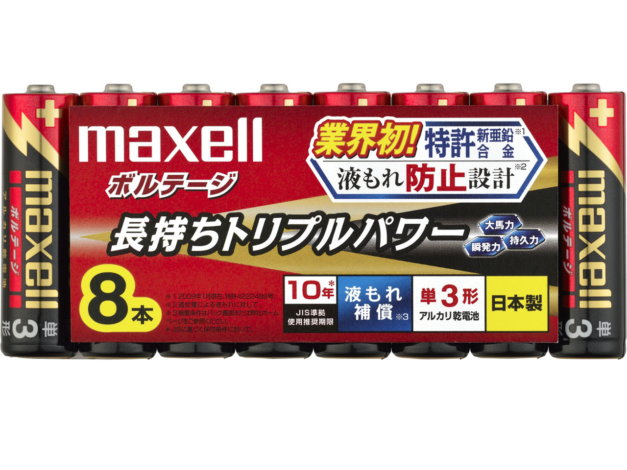 【新品】ボルテージ アルカリ乾電池 単3形 8本パック LR6(T) 8P