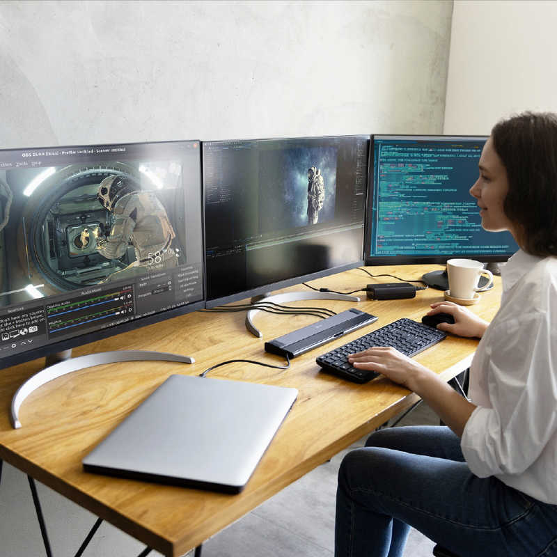 ポート数:4系統 電源供給:バスパワー インターフェイス(パソコン側):USB4 Type-C、Thunderbolt4兼用 インターフェイス(USB機器側):USB2.0 Type-Ax1/USB3.2 Gen2 Type-Ax2/Cx1/HDMIx2/DPx1/LANx1/3.5mmx1/SD/microSD