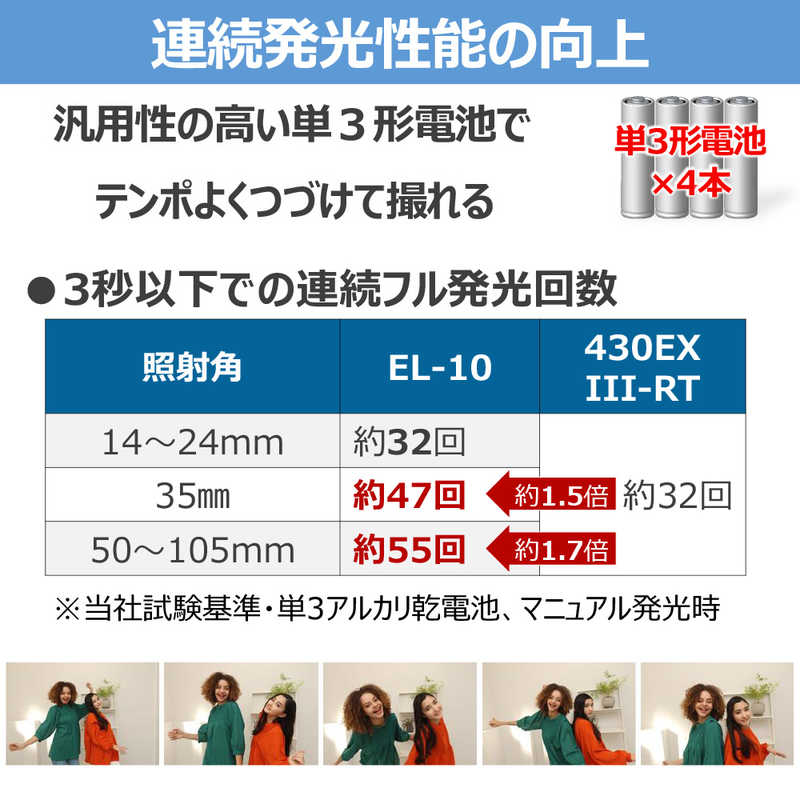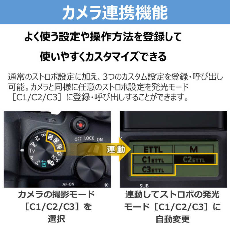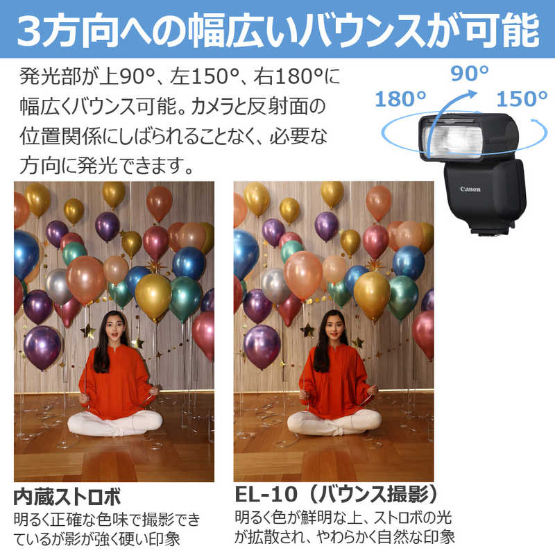 調光方式:E-TTL II/E-TTL 最大ガイドナンバー(ISO100):40 重量:287g 機能:マニュアル設定/ワイヤレス発光/バウンス/ハイスピードシンクロ(FP発光)