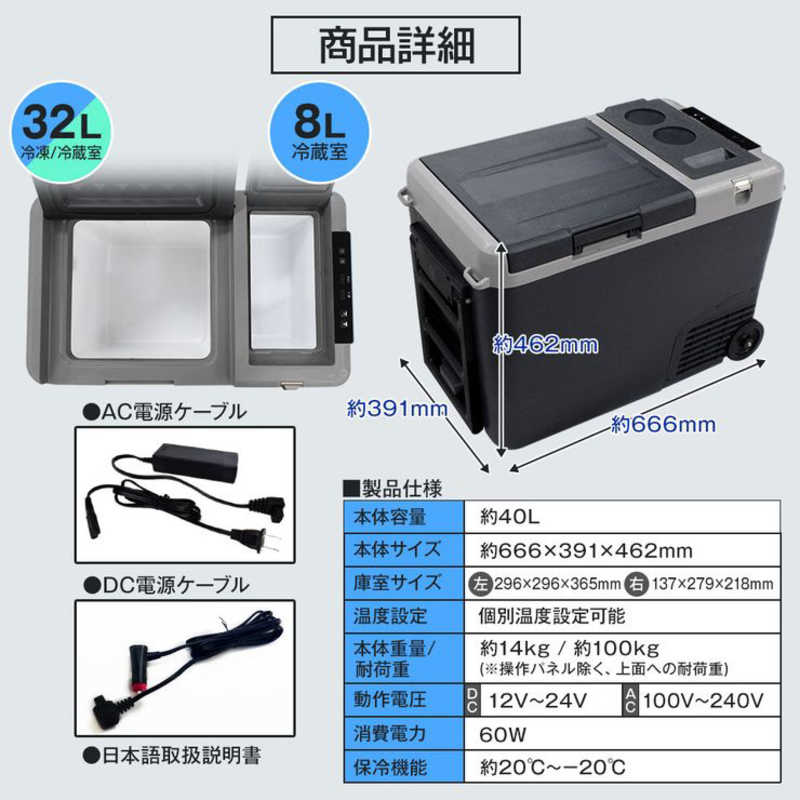 タイプ:冷凍冷蔵庫 定格内容積:40L ドア数:2ドア 幅:666mm