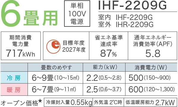畳数目安:おもに6畳用 年度モデル:2025年モデル 電源:100V 多段階評価点(2027年度):2 年間電気代:19359円