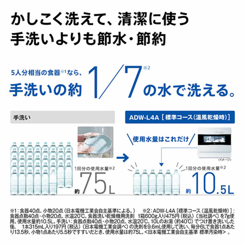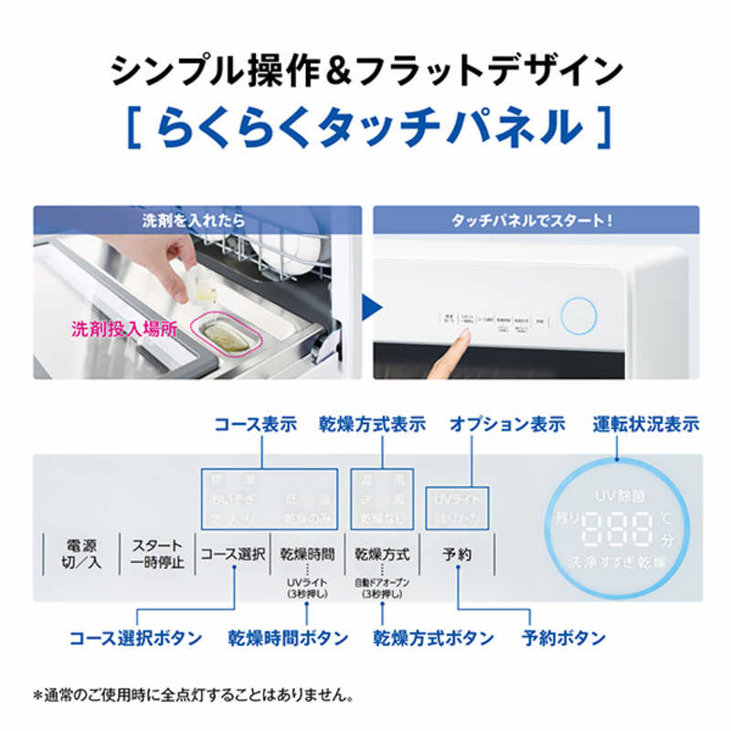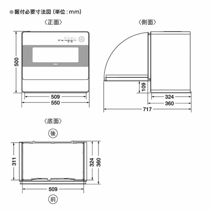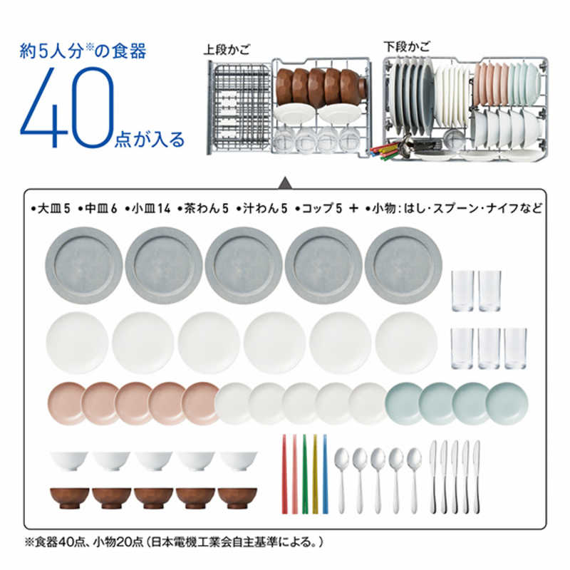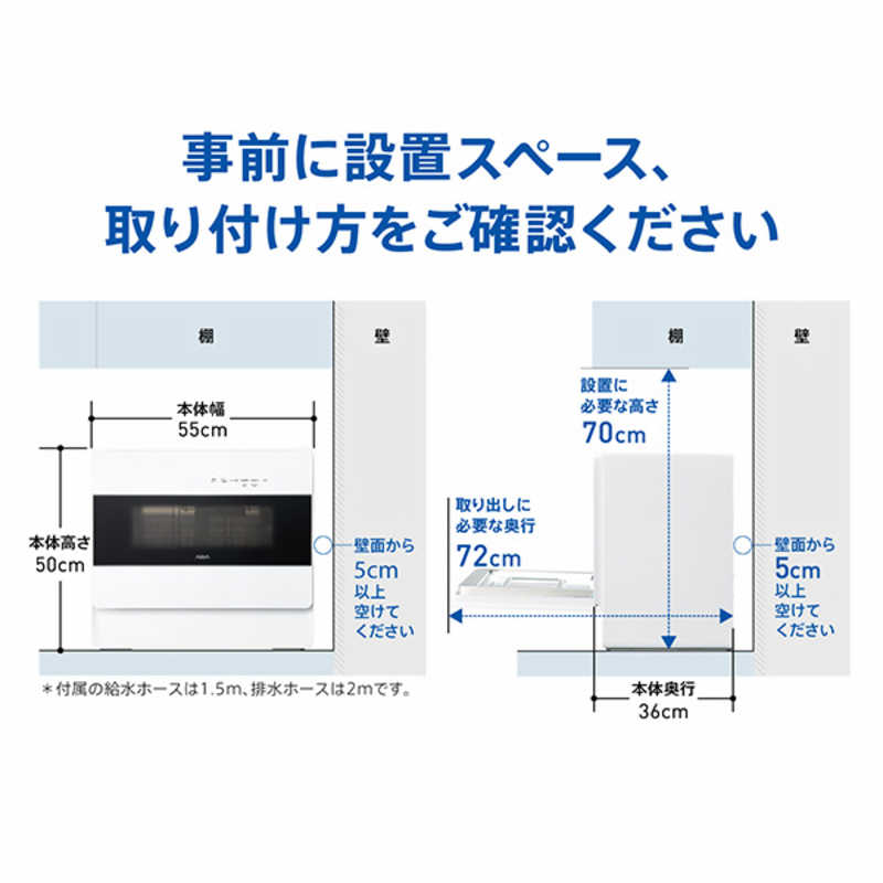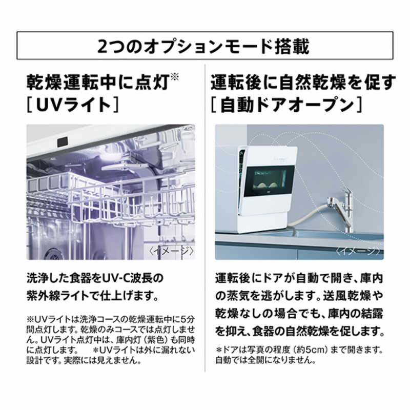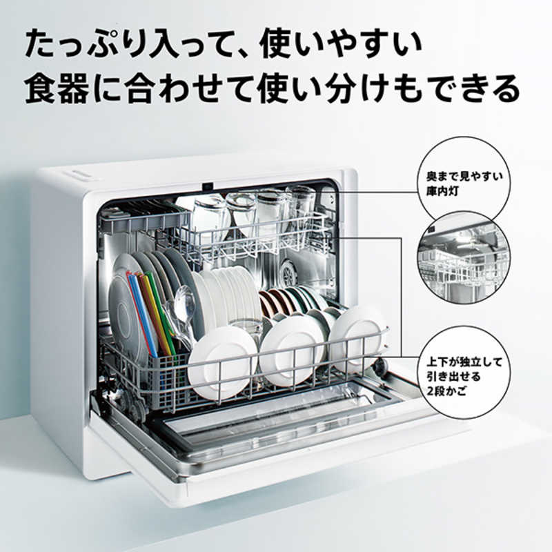 設置タイプ:据え置き・卓上 食器容量:5人分 ドア開閉方法:前開き式 乾燥機能:○ 幅x高さx奥行き:550x500x360mm